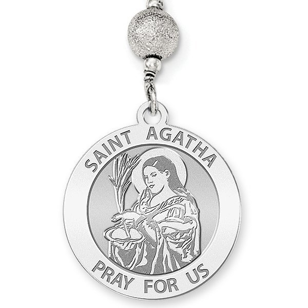 Saint Agatha of Sicily (d. 251) is a Christian saint. Her memorial is on 5 February. Agatha was born at Catania and she was martyred in approximately AD 250. She is the patron saint of Catania. She is one of seven women, excluding the Blessed Virgin Mary, commemorated by name in the Canon of the Mass.