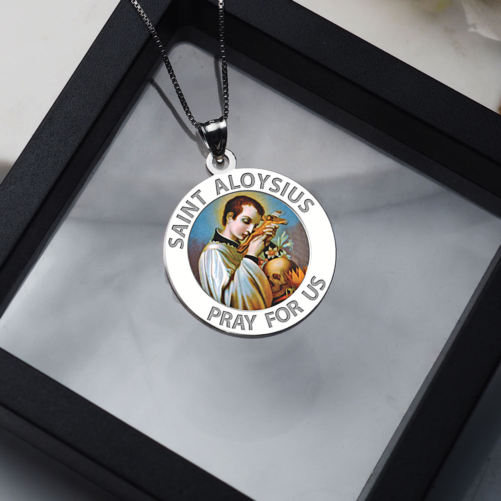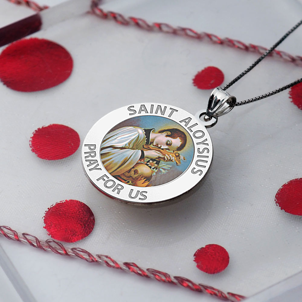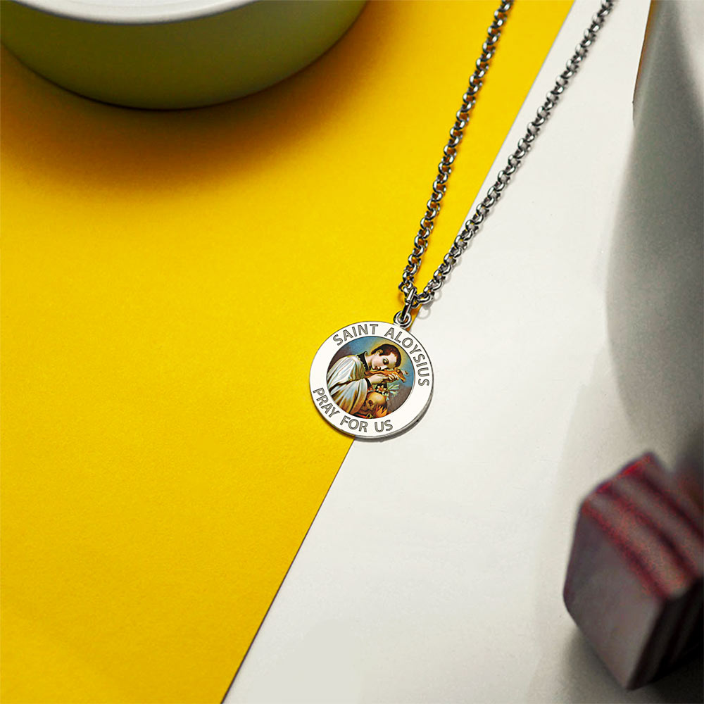 Saint Aloysius Gonzaga Round Religious Medal Color