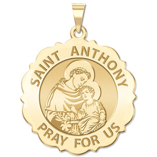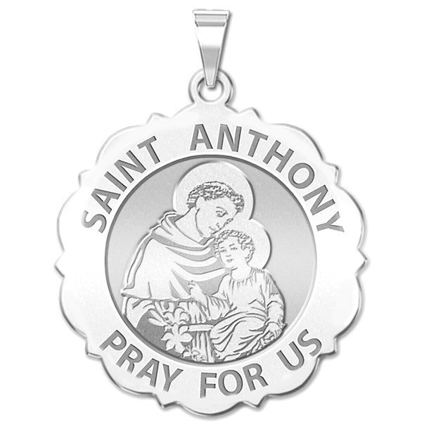 Saint Anthony Scalloped Round Religious Medal "EXCLUSIVE"