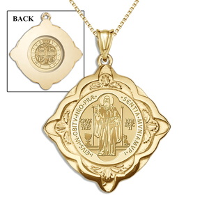 This item can be engraved on the backside and also include the Saint Benedict medal on the backside. We normally shrink the slightly and add the words underneath.