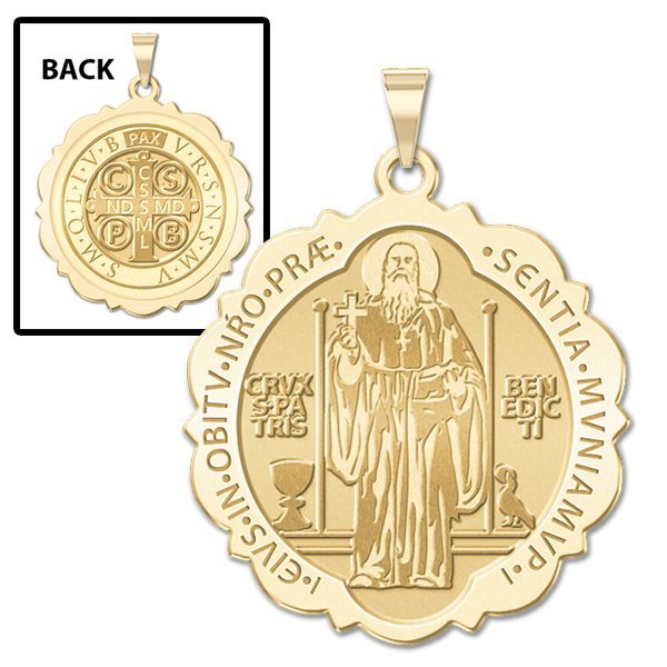 Saint Benedict Scalloped Round Religious Medal "EXCLUSIVE"