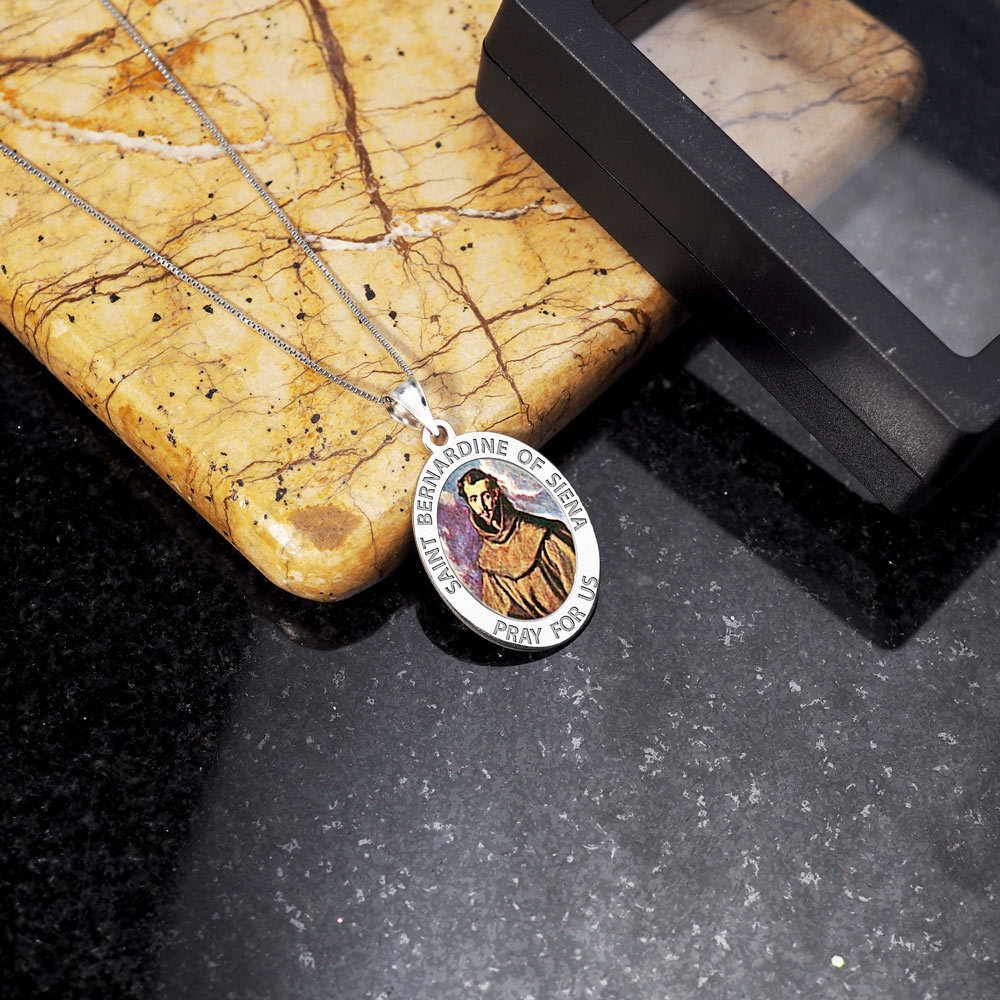 Saint Bernadine Of Siena Oval Religious Medal Color