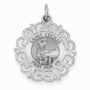 Saint Cecilia Round Filigree Religious Medal "EXCLUSIVE"