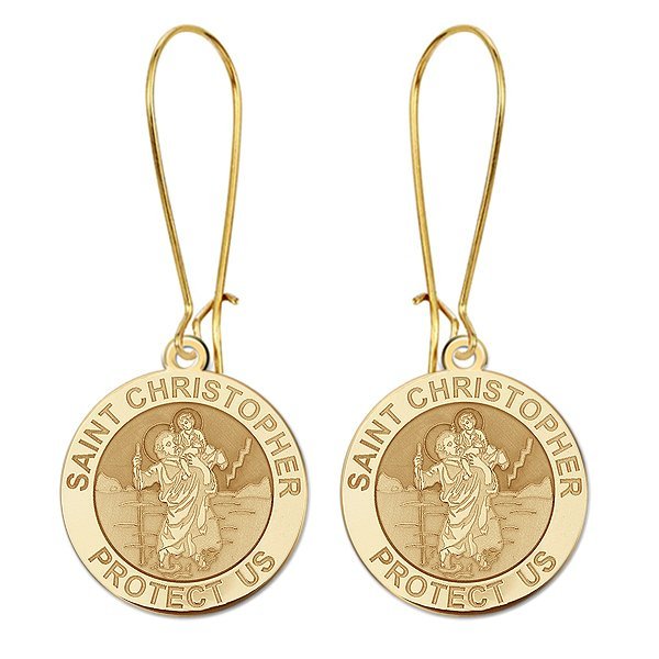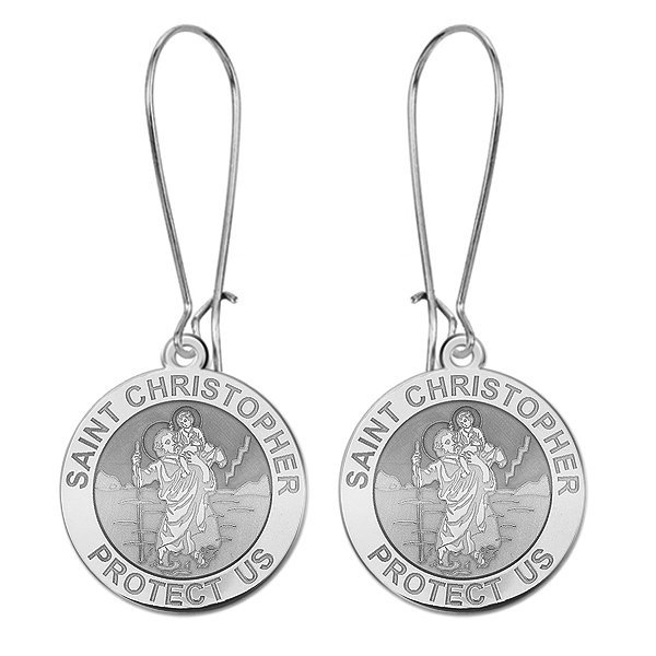 Saint Christopher is a saint venerated by Roman Catholics and Orthodox Christians, listed as a martyr killed in the reign of the 3rd century Roman emperor Decius (reigned 249251). The Eastern Orthodox Church venerates Saint Christopher on 9 May. The Tridentine Calendar allowed a commemoration of Saint Christopher on 25 July only in private Masses. This restriction was lifted later (see General Roman Calendar as in 1954). While the Roman Catholic Church still approves devotion to him, listing him in the Roman Martyrology among the saints venerated on 25 July, it removed his feast day from the Roman Catholic calendar of saints in 1969. At that time the church declared that this commemoration was not of Roman tradition, in view of the relatively late date (about 1550) and limited manner in which it was accepted into the Roman calendar. *Price Per Pair * Each Earring is 15mm / 1/2" inch (smaller than a dime)