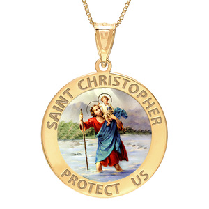 This 14k yellow gold Saint Christopher is the most popular saint worn by travelers.
