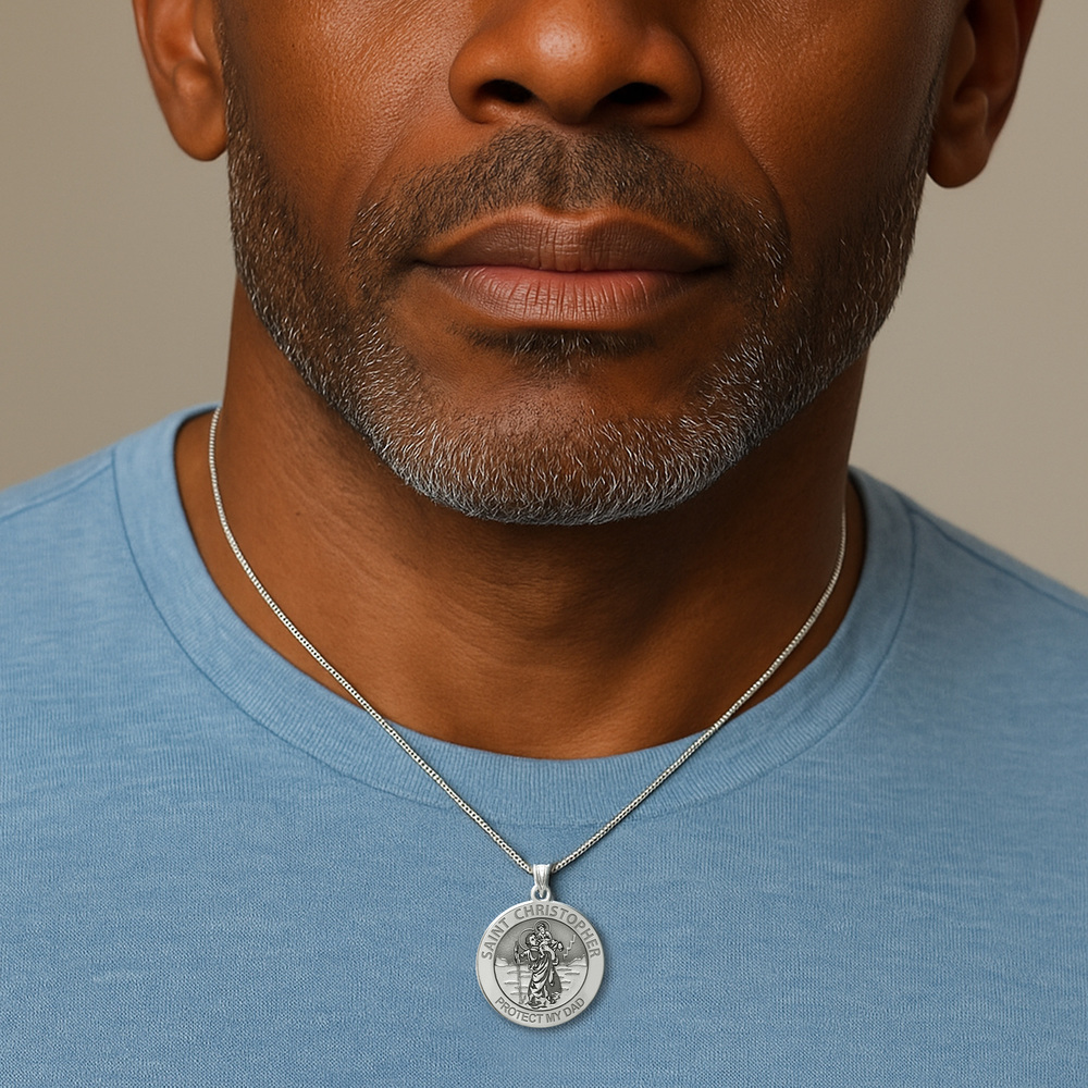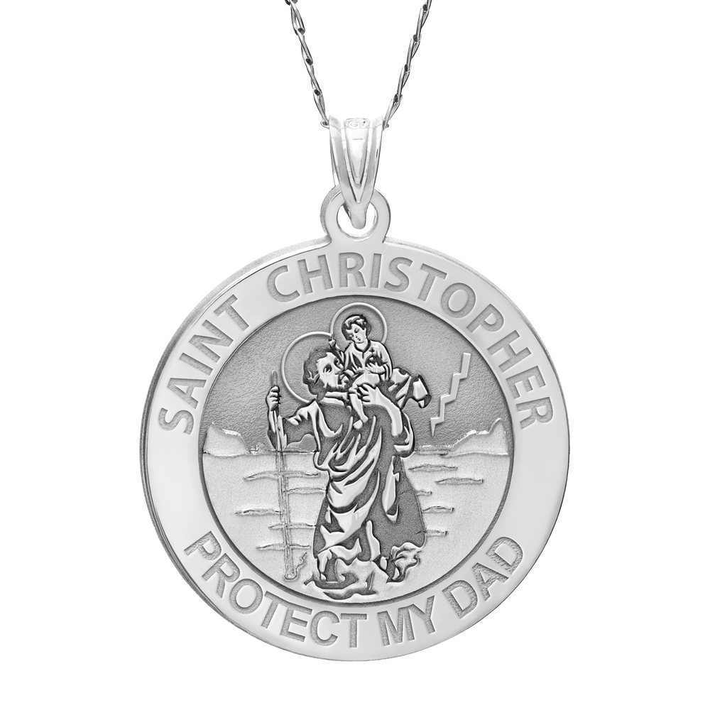 Saint Christopher Protect My Dad Religious Round Medal