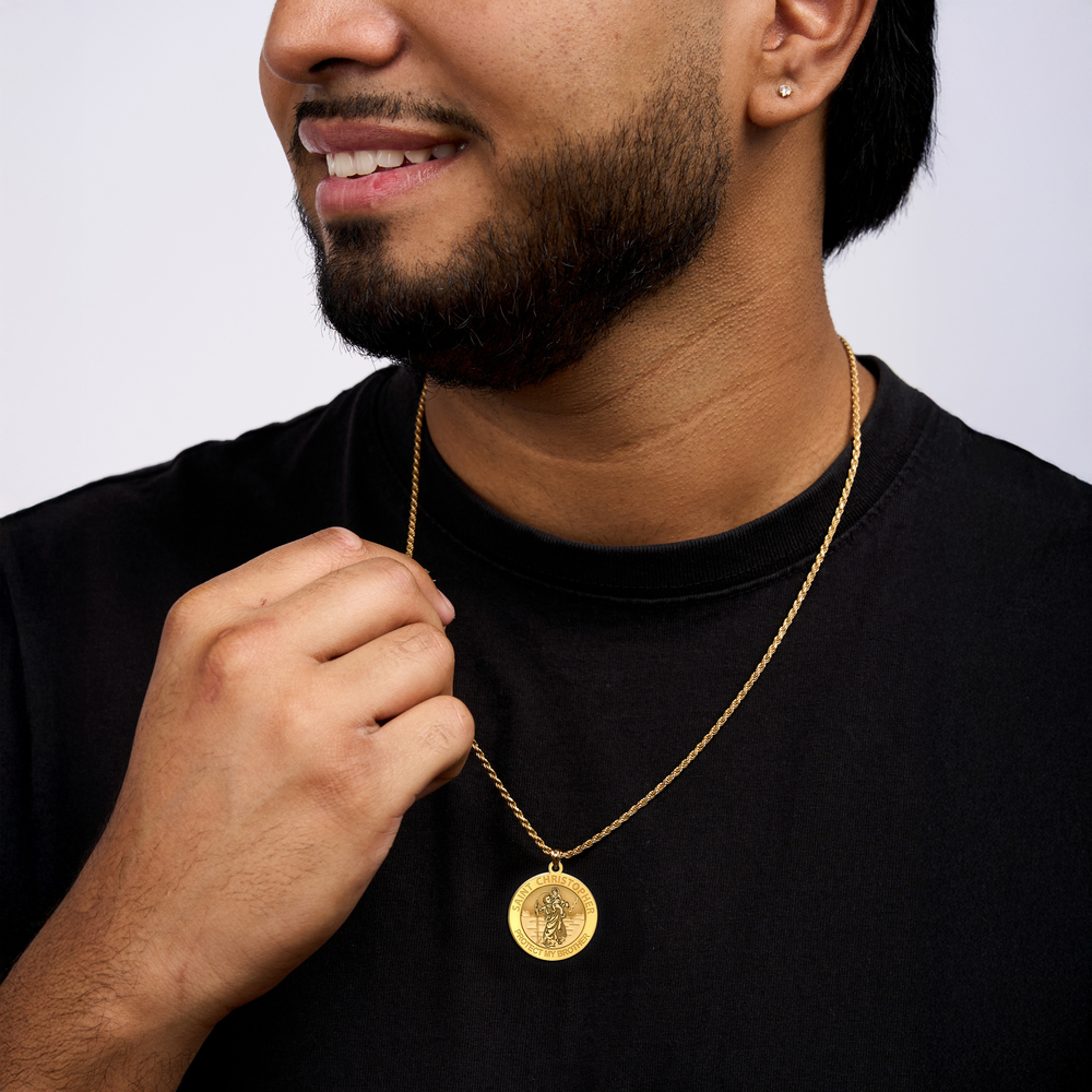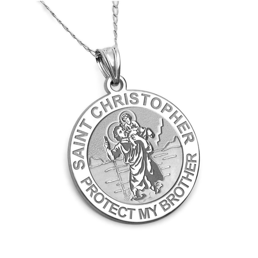 Saint Christopher Protect My Brother Religious Round Medal