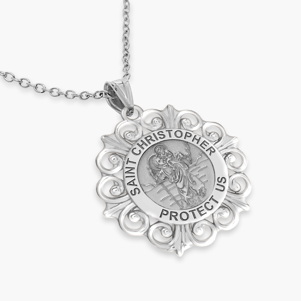 Saint Christopher Round Filigree Religious Medal "EXCLUSIVE"