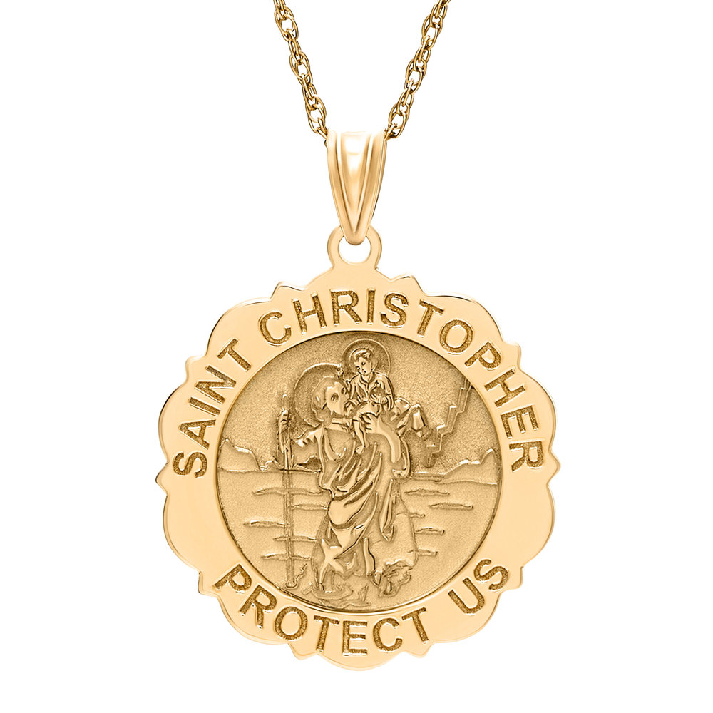 Saint Christopher Scalloped Round Religious Medal - "EXCLUSIVE"