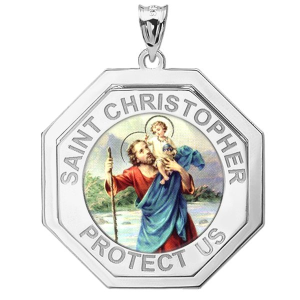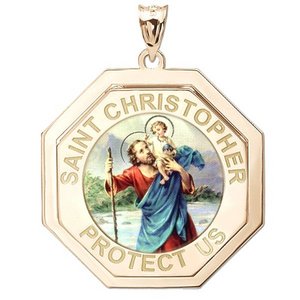 Saint Christopher Three Dimensional Premium Weight Octagon Religious Medal - "Color EXCLUSIVE"