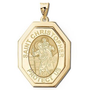 Saint Christopher Three Dimensional Premium Weight Long Octagon Religious Medal - "EXCLUSIVE"