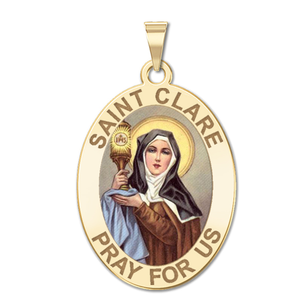 Saint Clare of Assisi OVAL Color Religious Medal "EXCLUSIVE"