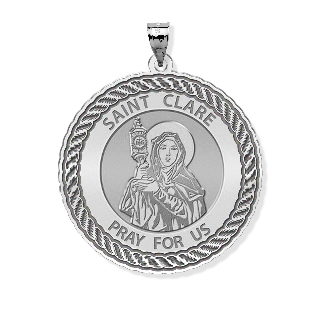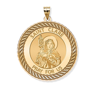 Saint Clare of Assisi Round Rope Border Religious Medal
