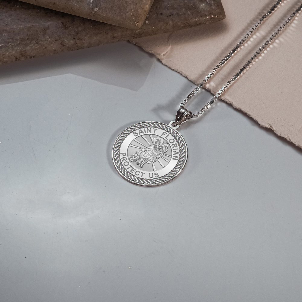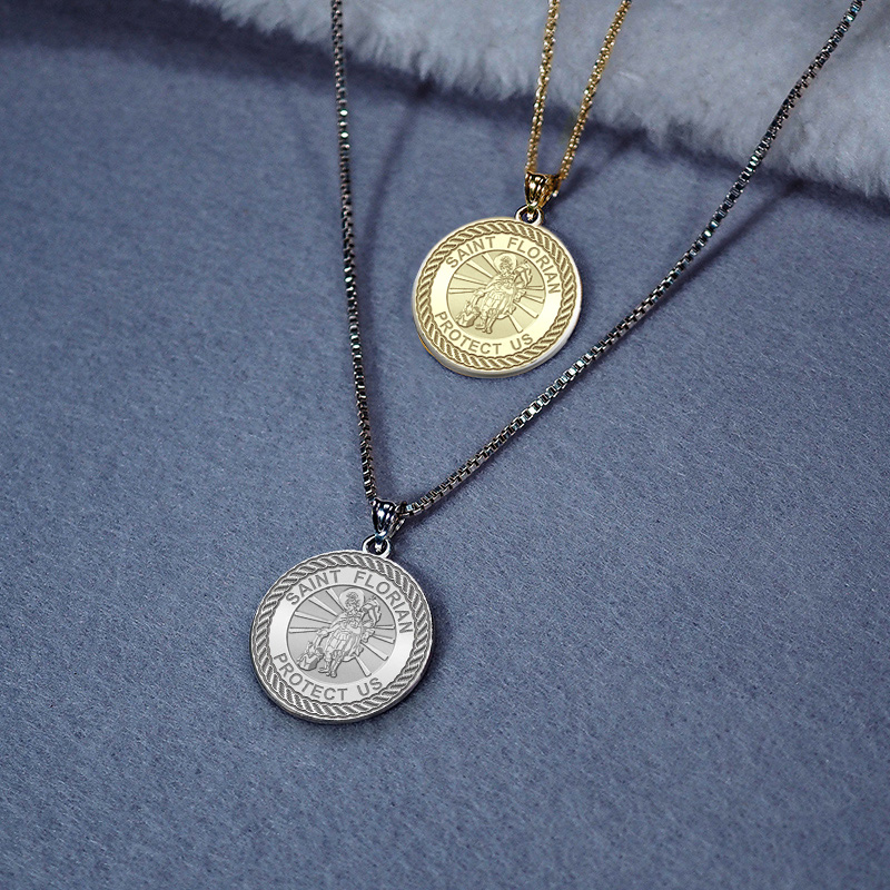 This Solid 14K Gold Saint Florian Medal is the patron Saint of Firefighters. He held an high administrative post in the Roman Army. In the 4th century their was a fierce persecution of Christians. Saint Florian was tortured and killed.