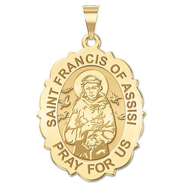 Saint Francis of Assisi Scalloped Oval Religious Medal "EXCLUSIVE"