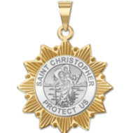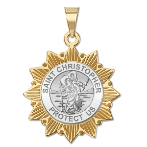 Saint Christopher Two-Tone Sun Border Religious Medals "EXCLUSIVE"