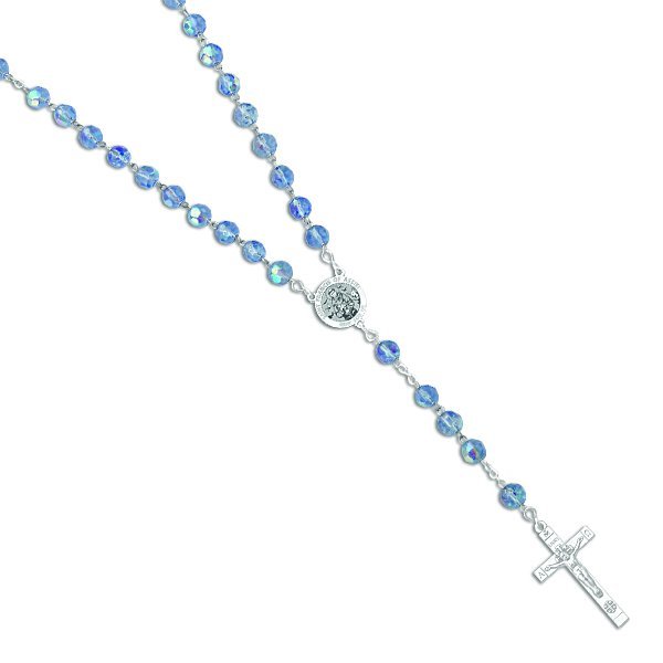 Choose from Blue Glass Crystal, Jasmine Petal, Rose Petal, and Olive Wood Rosary Beads