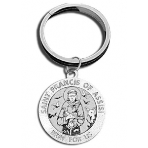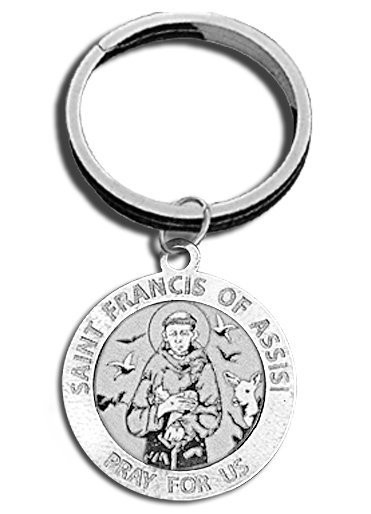 The Saint Francis Keychain can be engraved with a personalized message on the reverse side