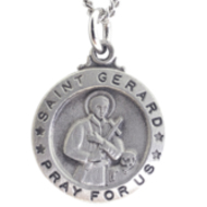 This Saint Gerard Medal measures at 3/4 inch x 3/4 inch, the height of a nickel and includes an 18 inch curb chain.