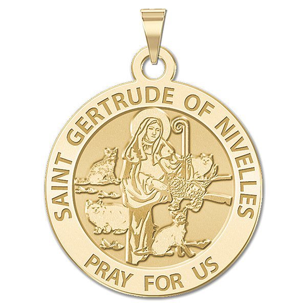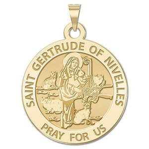 Saint Gertrude of Nivelles Round Religious Medal - "EXCLUSIVE"