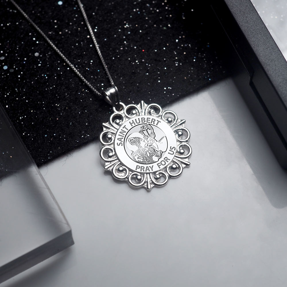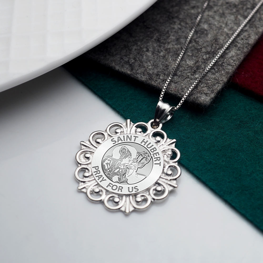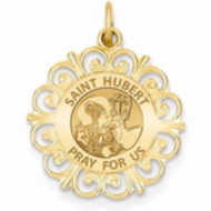 Saint Hubert Round Filigree Religious Medal "EXCLUSIVE"