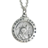 This Saint John medal measures at 3/4 inch x 3/4 inch, the height of a nickel.