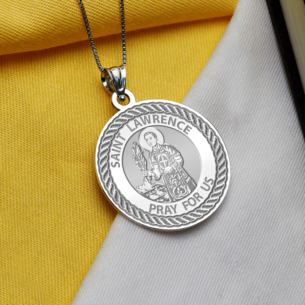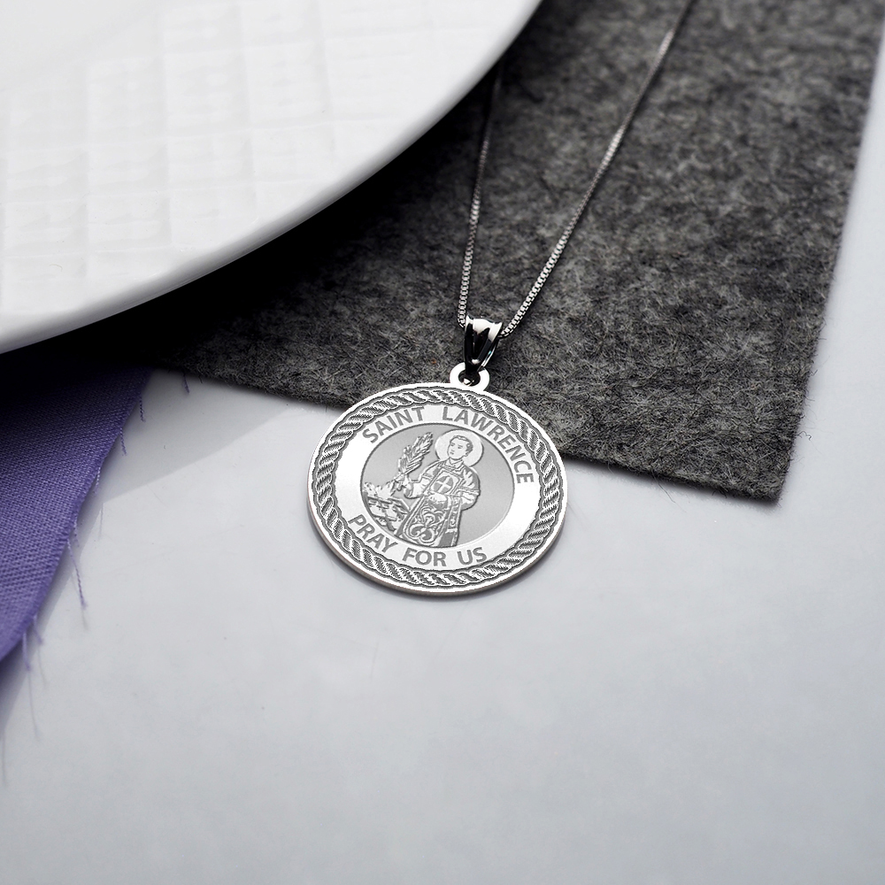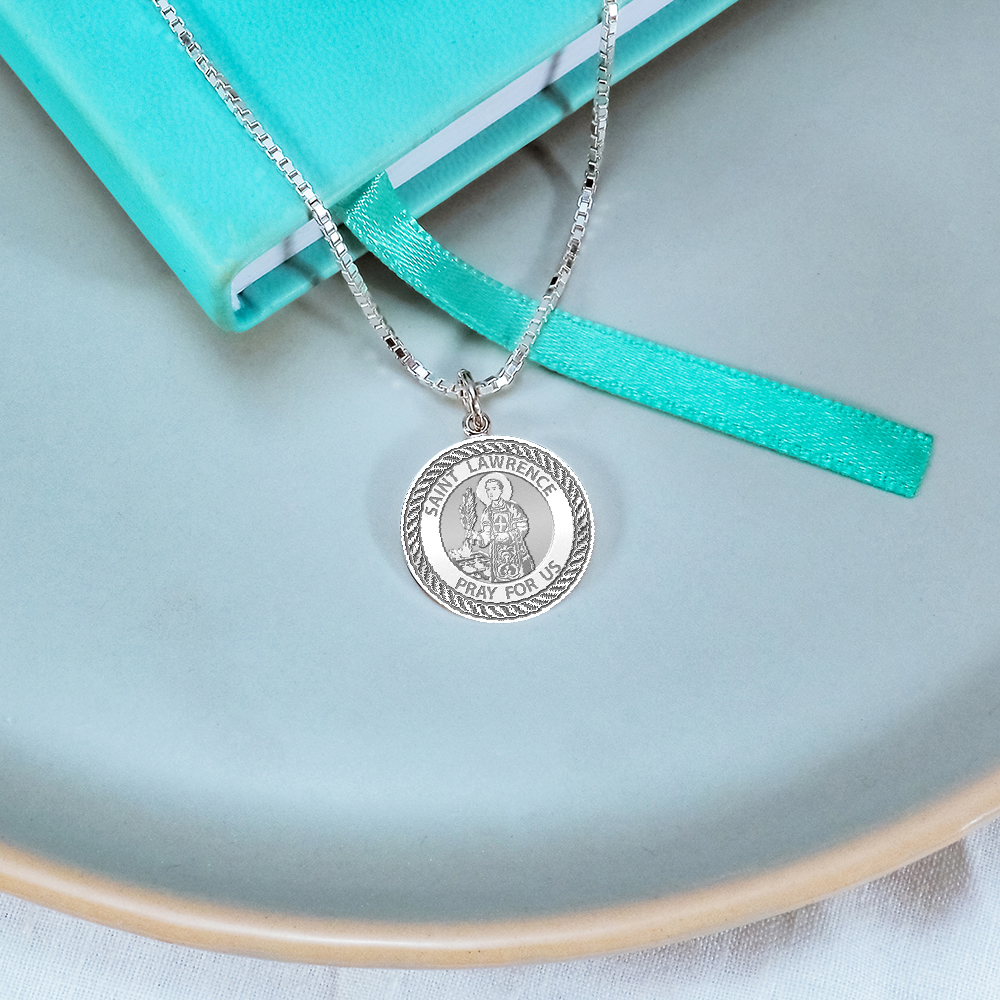 Saint Lawrence Round Rope Border Religious Medal