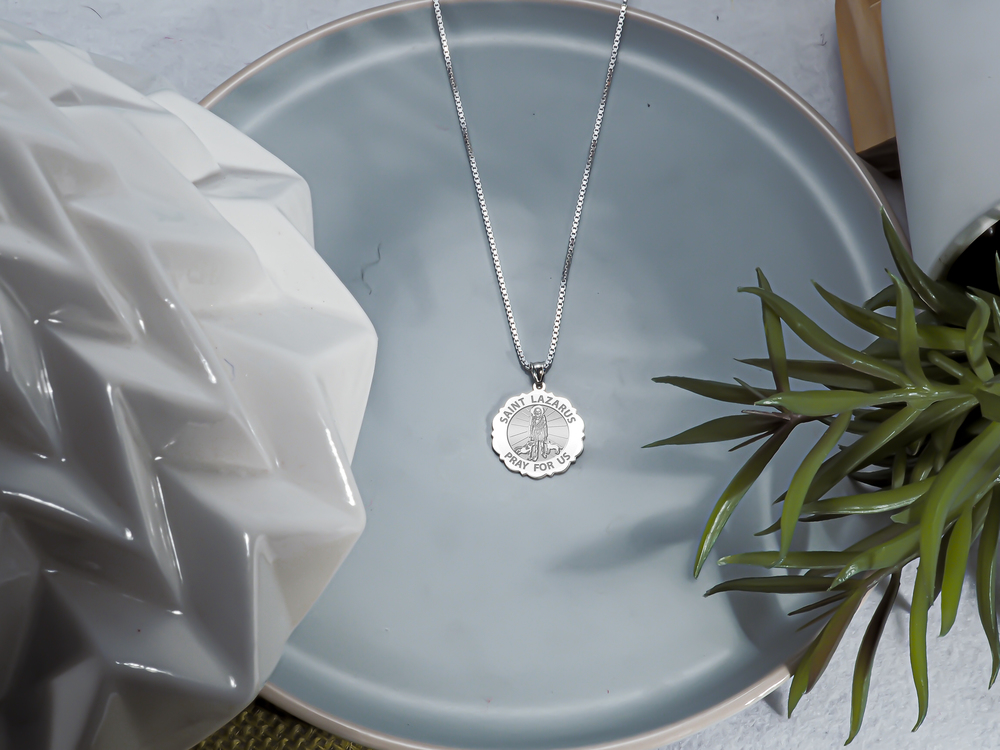 Saint Lazarus Religious Scalloped Round Medal "EXCLUSIVE"