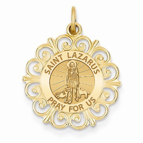Saint Lazarus Round Filigree Religious Medal "EXCLUSIVE"
