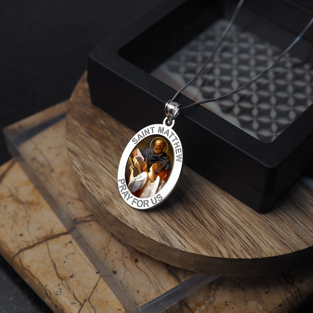 Saint Matthew OVAL Religious Medal "Color EXCLUSIVE"