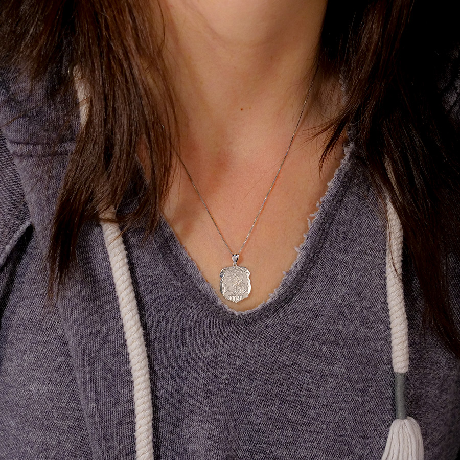 This Solid Saint Michael medal is the patron Saint of Policemen. His name is Hebrew for "who is like God?" He is