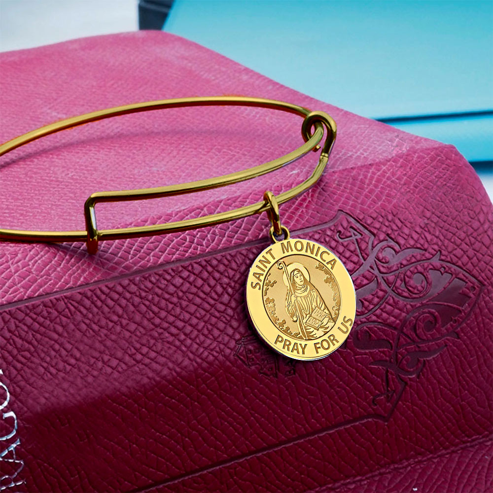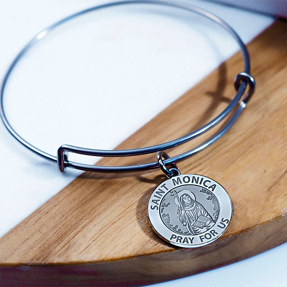 The Saint Monica charm measures at 3/4 Inch (Size of a Nickel)