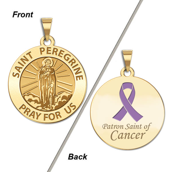 Saint Peregrine Double Sided Patron Saint of Cancer Round Religious Medal w/ Color Ribbon