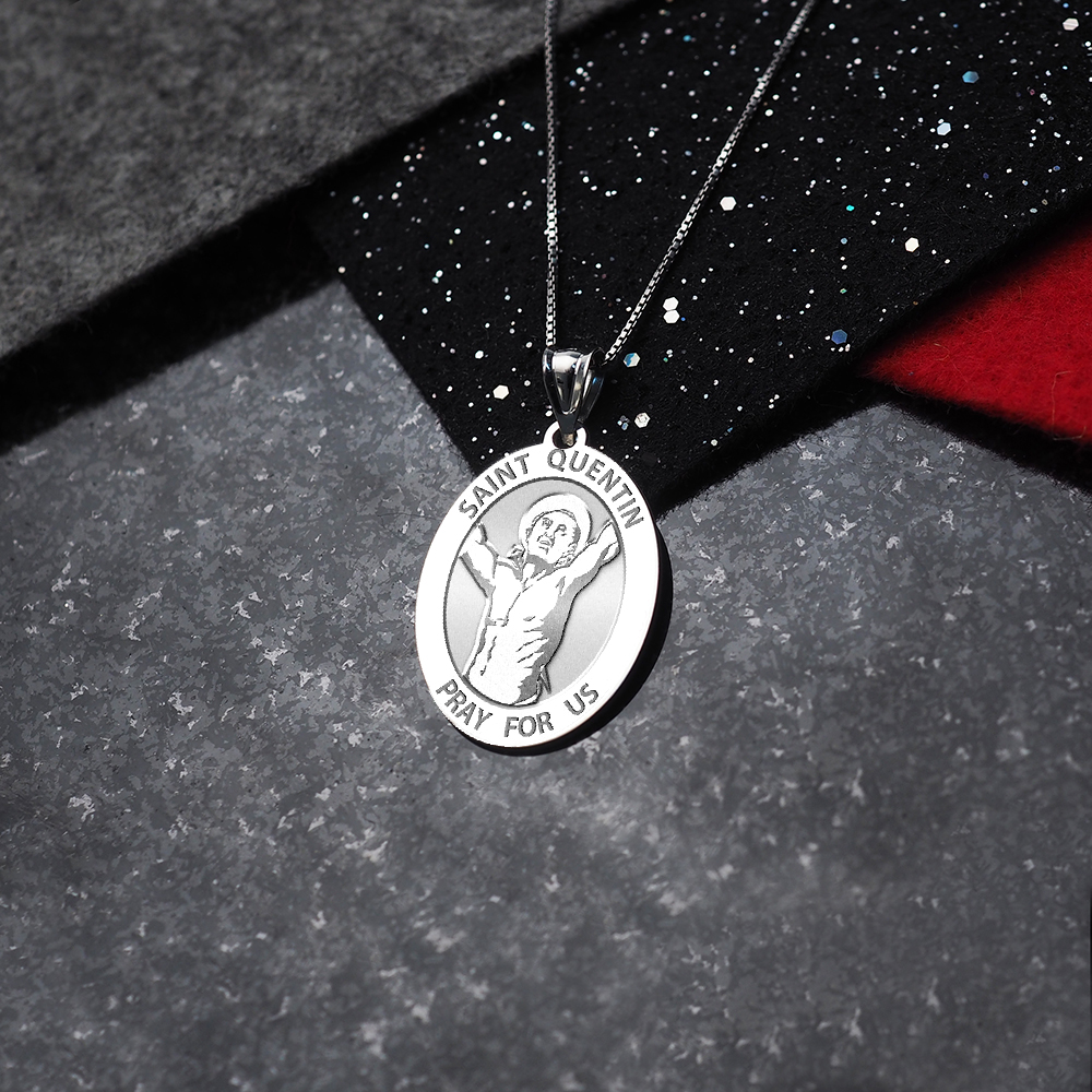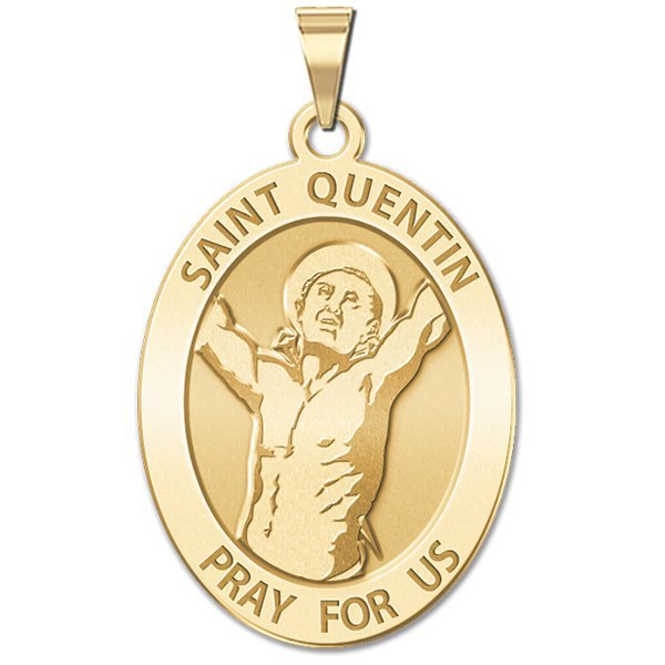 Saint Quentin and The legend of his life has him as a Roman citizen who was martyred in Gaul. He is said to have been the son of a man named Zeno, who had senatorial rank. Filled with apostolic zeal, Quentin traveled to Gaul as a missionary with Saint Lucian, who was later martyred at Beauvais and others (the martyrs Victoricus and Fuscian are said to have been Quentin's followers). Quentin settled at Amiens and performed many miracles there. Because of his preaching, he was imprisoned by the "prefect" Rictiovarus, who had traveled to Amiens from Trier. Quentin was manacled, tortured repeatedly, but refused to abjure his faith. The prefect left Amiens to go to Reims, the capital of Gallia Belgica, where he wanted Quentin judged. But, on the way, in a town named Augusta Veromanduorum (now Saint-Quentin, Aisne), Quentin miraculously escaped and again started his preaching. Rictiovarus decided to interrupt his journey and pass sentence: Quentin was tortured again, then beheaded and thrown secretly into the marshes around the Somme, by Roman soldiers.