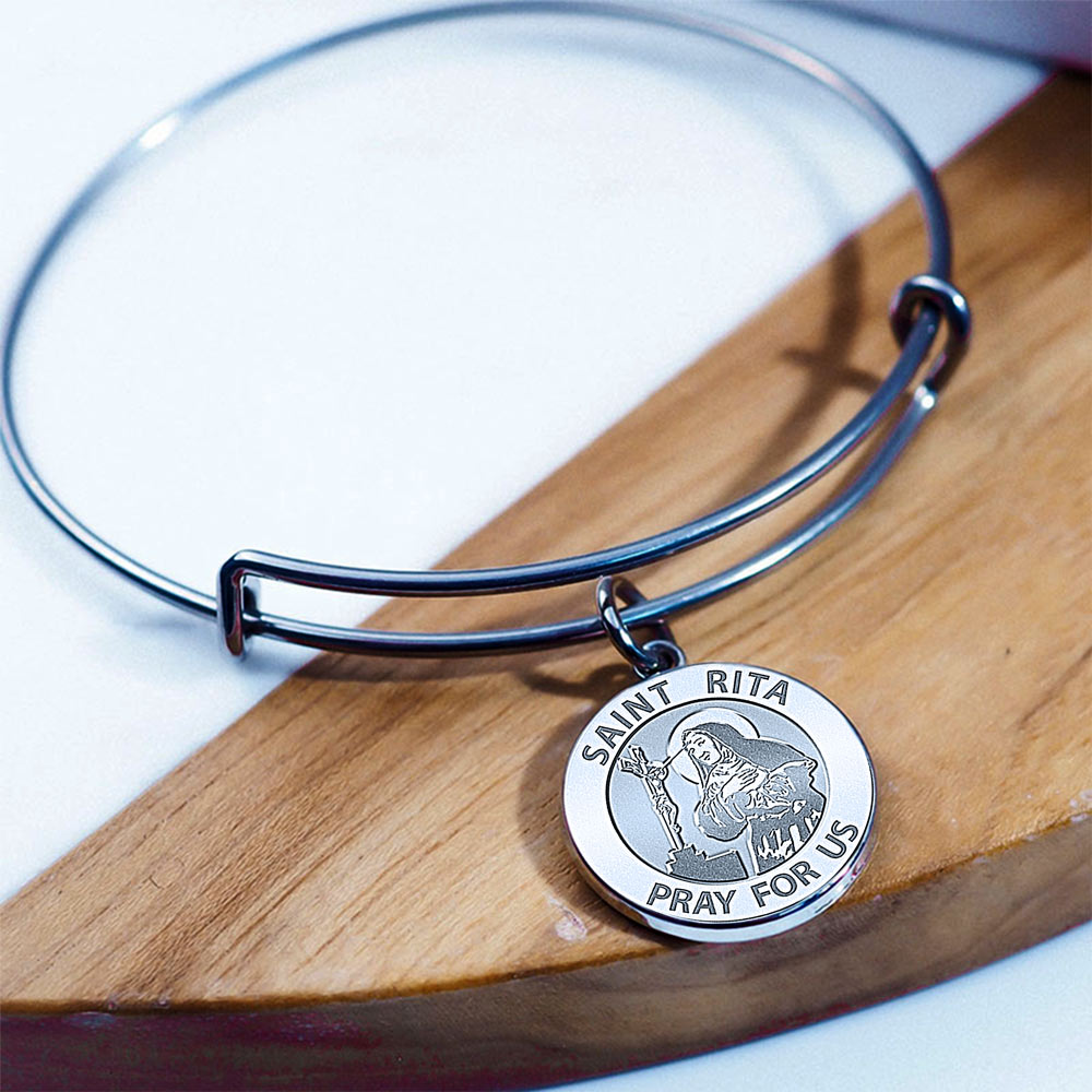 The Saint Rita Medal charm measures at 3/4 Inch (Size of a Nickel)