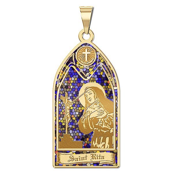 St. Rita was born at Roccaporena near Spoleto, Umbria, Italy. She married at age 12 to Paolo Mancini. Her parents arranged her marriage, despite the fact that she repeatedly begged them to allow her to enter a convent. Mancini was a rich, quick-tempered, immoral man, who made many enemies in the region. St. Rita endured his insults, abuse, and infidelities for 18 years, and bore two sons with Mancini, Giangiacomo Antonio and Paolo Maria. Although she tried to raise them with Catholic values, her sons grew to be like their father. Toward the end of her husband's life, St. Rita helped convert him to live in a more pious manner. Although Mancini became more congenial, his allies betrayed him, and he was violently stabbed to death. Before his death, he repented to St. Rita and the Church, and she forgave him for his transgressions against her. After Mancini's murder, her sons wished to exact revenge on their father's murderers. Knowing murder was wrong, she tried to persuade them from retaliating, but to no avail. She, instead, prayed to God for Him to take away the lives of her sons instead of seeing them commit such a terrible sin. In religious history, God heard St. Rita's words and her sons died of natural causes a year later. After the deaths of her husband and sons, St. Rita desired to enter the monastery of Saint Mary Magdalene at Cascia but was spurned for being a widow, as virginity was required for entry into the convent. However, she persisted in her cause and was given a condition before the convent could accept her; the difficult task of reconciling her family with her husband's murderers. She was able to resolve the conflicts between the families at the age of 36, and was allowed to enter the monastery. However, her actual entrance into the monastery has been described as a miracle. During the night, when the doors to the monastery were locked and the sisters were asleep, St. Rita was miraculously transported into the convent by her patron saints Saint John the Baptist, Saint Augustine, and Saint Nicholas of Tolentino. When she was found inside the convent in the morning and the sisters learned of how she entered, they could not turn her away. One day, while living at the convent Rita said, "Please let me suffer like you, Divine Saviour". Suddenly, a thorn from a figure of the crucifixion of Jesus Christ fell from the crown of thorns and wounded Rita's forehead. As a result, depictions of St. Rita show a forehead wound to represent this event. She remained at the monastery, living by the Augustinian Rule, until her death. She is Patron Saint of Lost and impossible causes, sickness, wounds, marital problems, abuse, mothers, and recently ... Baseball.