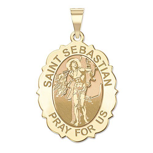 Saint Sebastian - Scalloped Oval Religious Medal "EXCLUSIVE"
