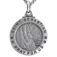 This Saint Sebastian medal measures at 3/4 inch x 3/4 inch, the height of a nickel.