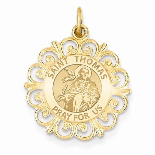 Saint Thomas Aquinas Round Filigree Religious Medal "EXCLUSIVE"