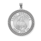 Saint Veronica was a pious woman of Jerusalem who, moved with pity as Jesus carried his cross to Golgotha, gave him her veil that he might wipe his forehead. Jesus accepted the offering and after using it handed it back to her, the image of His face miraculously impressed upon it. The name "Veronica" itself is a latinisation of Berenice, a Macedonian name, meaning "bearer of victory" Eusebius in his Historia Ecclesiastica (vii 18)tells how at Caesarea Philippi lived the woman whom Christ healed of an issue of blood (Matt ix 20). Legend was not long in providing the woman of the Gospel with a name. In the West she was identified with Martha of Bethany; in the East she was called Berenike, or Beronike, the name appearing in as early a work as the Acta Pilati, the most ancient form of which goes back to the fourth century. It is interesting to note that the fanciful derivation of the name Veronica from the words Vera Icon (eikon) "true image" dates back to the "Otia Imperialia" (iii 25) of Gervase of Tilbury (fl 1211), who says: "Est ergo Veronica pictura Domini vera".