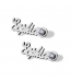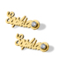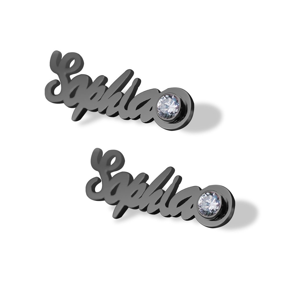 This pair of high polished script earrings is available in Solid .925 Sterling Silver, Black Sterling Silver, Gold