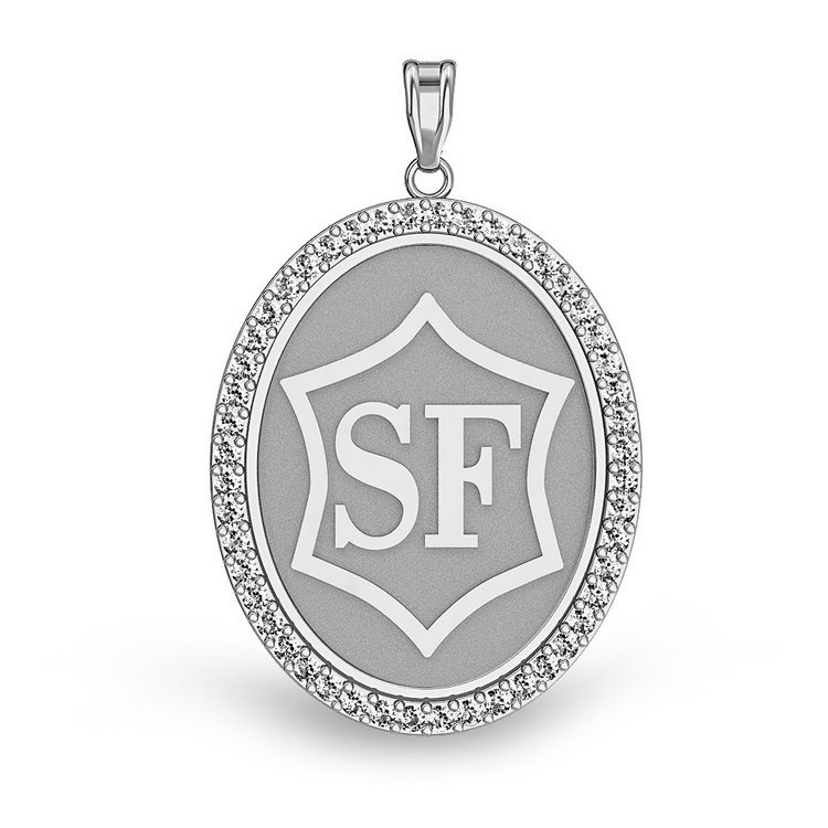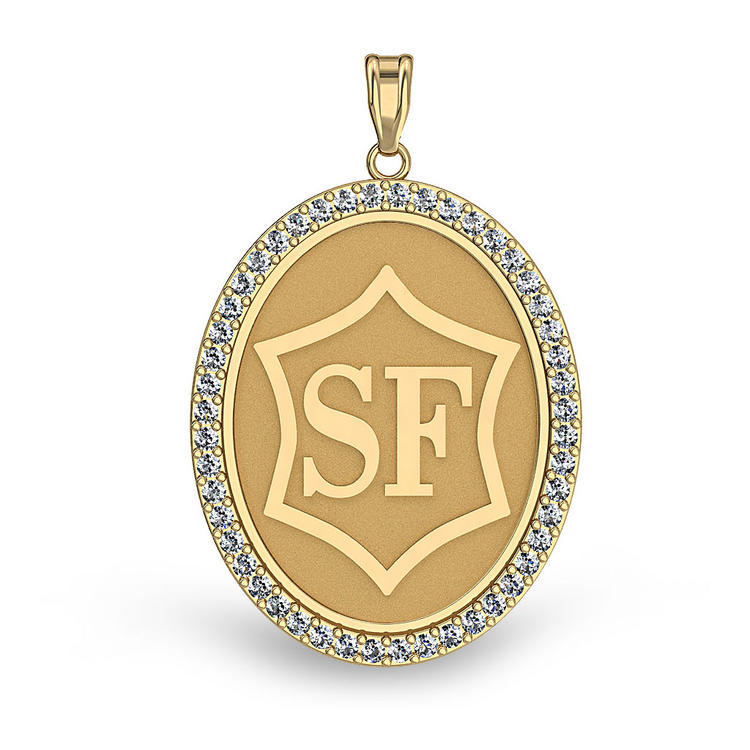 This medal is available in a 1 Inch x 1 1/4 Inch ; and comes in solid 14k Yellow or White gold.