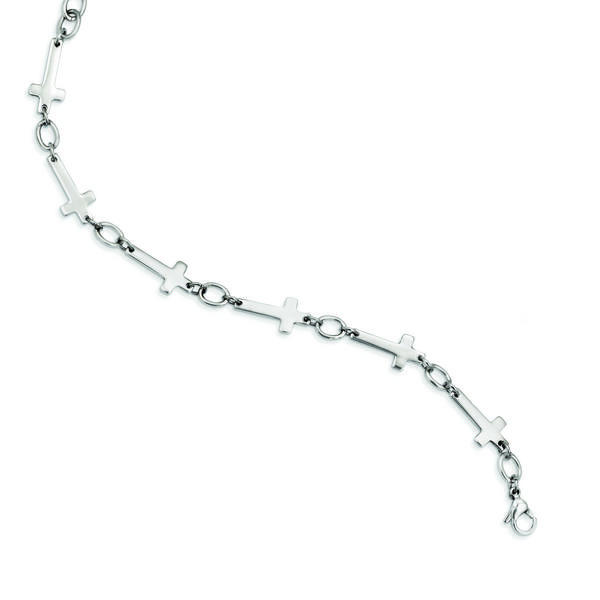 This Stainless Steel Polished Sideways Cross 8in Bracelet's Average Weight is 6.73 GM Each Cross Measures 3/4 Inch x 1/3 Inch