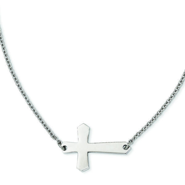 This Stainless Steel Polished Sideways Cross Necklace's Average Weight is 7.92 GM Cross Measures at 1-1/3 Inch Wide x 3/4 Inch Tall 21 Inch Stainless Steel Bracelet Included