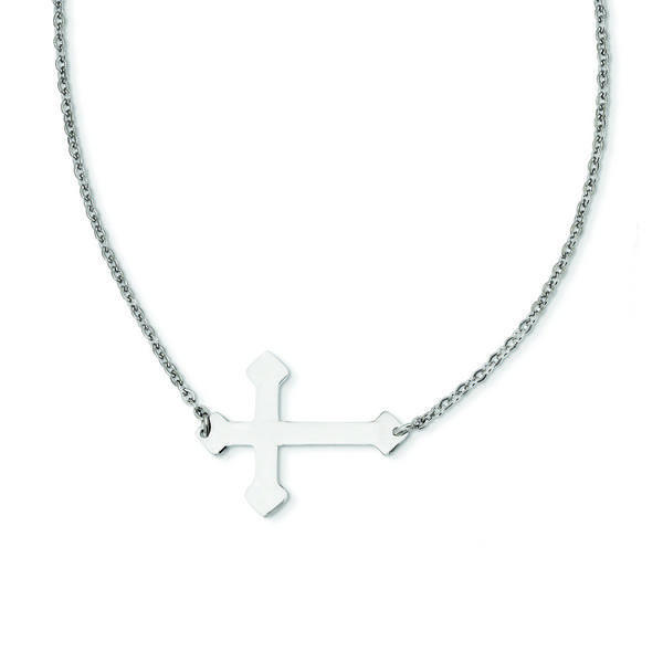 This Stainless Steel Polished Sideways Cross Necklace's Average Weight is 6.26 GM Cross Measures at 1 Inch Wide x 3/4 Inch Tall 19 Inch Stainless Steel Chain Included