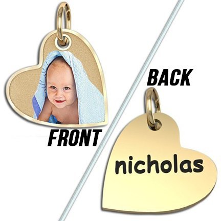 A:  Color Laser: Your photo in full color permanently lasered onto your charm. This process being the most detailed. We´ve had customers say, "My pendant actually looks better than the photo." A protective jewelry enamel is added to every "color laser" pendant to ensure that every day your charm will look as beautiful as the day you took it out of the box.
