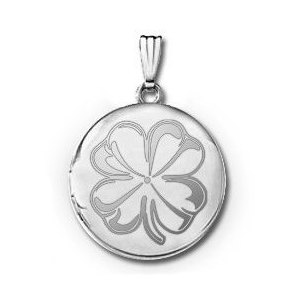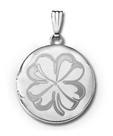 Sterling Silver Round 4 Leaf Clover Picture Locket