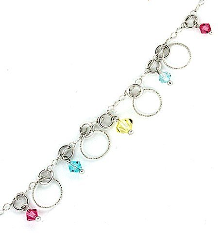 Sterling Silver Adjustable Anklet / Ankle Bracelet Beads & Hoops