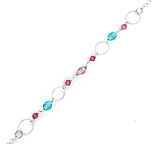 Sterling Silver Adjustable Anklet / Ankle Bracelet Beads & Hoops