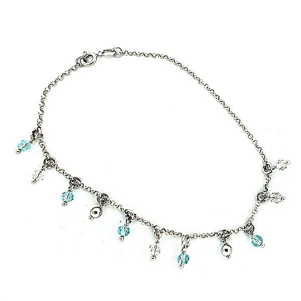Sterling Silver Adjustable Anklet / Ankle Bracelet Multi-Colored Beads